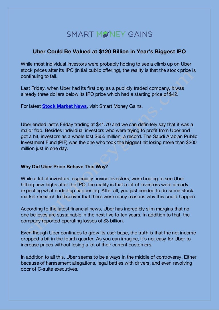Why Is Uber Stock Up Today : Uber Is Latest Firm To Flounder Post Ipo Wsj / This means that if you invested $100 now, your current investment may be worth 151.898$ on 2022 january 21, friday.. If you're looking for timely and concise explanations of why a stock is moving, check out benzinga pro. Uber stock gained more than 70% in 2020 and is up over 150% since my article last march. The ipo was predicted to be one of the biggest in years. View live uber technologies inc chart to track its stock's price action. The spread of the pandemic has had a negative.