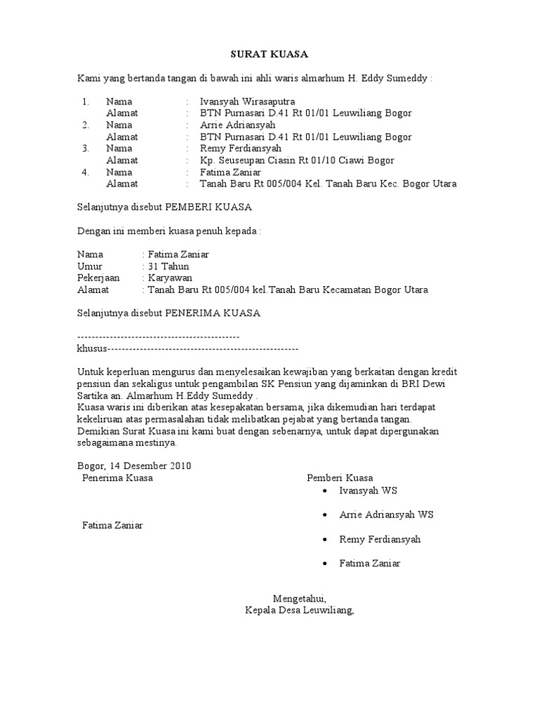 13 Contoh Surat Kuasa Untuk Berbagai Keperluan from i2.wp.com Surat kuasa adalah surat yang dibuat dengan tujuan untuk memberikan wewenang kepada pihak tertentu guna melakukan atau melaksana kan suatu tugas atas nama si pemberi kuasa. Nah itu melakukan pengambilan uang di bank dengan mewakilkan orang lain maka kita akan memerlukan surat kuasa. Demikian surat kuasa ini saya buat dengan kesadaran penuh dan tanpa ada paksaan dari pihak manapun dan semoga dapat digunakan sebagaimana mestinya. Nah, kembali ke masalah pengambilan sertifikat tanah di bank, tentunya bagi nasabah yang berhalangan hadir saat mengambil dokumen tersebut, pihak. Untuk lebih jelasnya, berikut kami cantumkan beberapa contoh surat kuasa pengambilan uang di. Menulis surat kuasa bank seperti surat kuasa pengambilan uang di bank bukanlah hal yang susah. Pada prinsipnya, surat kuasa pengambilan uang di bank sama seperti surat kuasa lainnya. Berikut contoh surat kuasa ini dalam format ms.